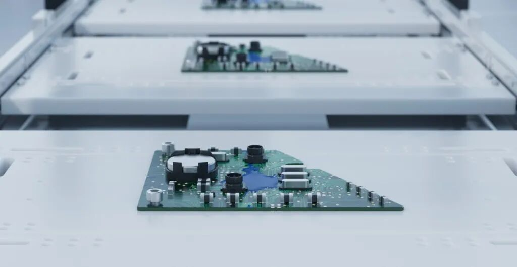 Precise positioning of critical areas: After coating and curing, the PCB is guided by a vision positioning system. The sensor is directed to 5 to 9 predefined measurement points. These points are selected based on failure analysis, focusing on high-risk areas like chip edges and connector pins.