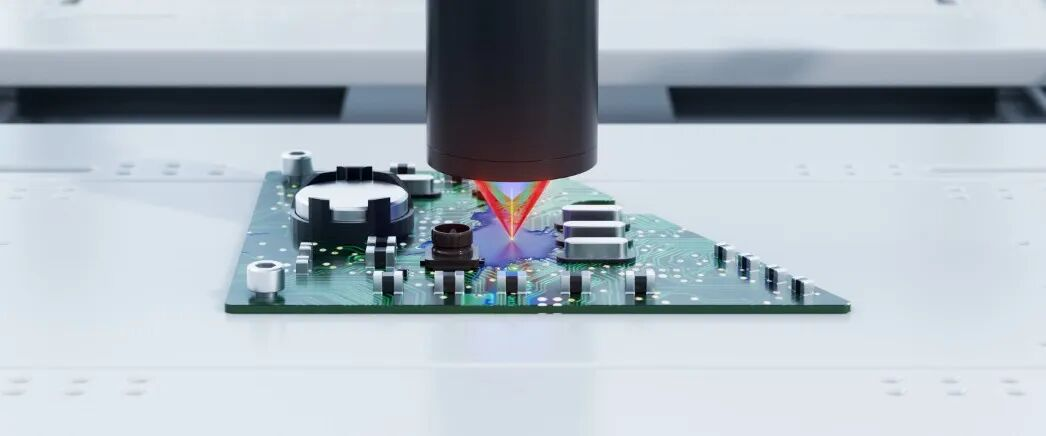 Optimized conformal coating thickness measurement for automotive PCBs. SinceVision SCI00532 spectral confocal sensor provides 0.006μm resolution for high-speed inline inspection.