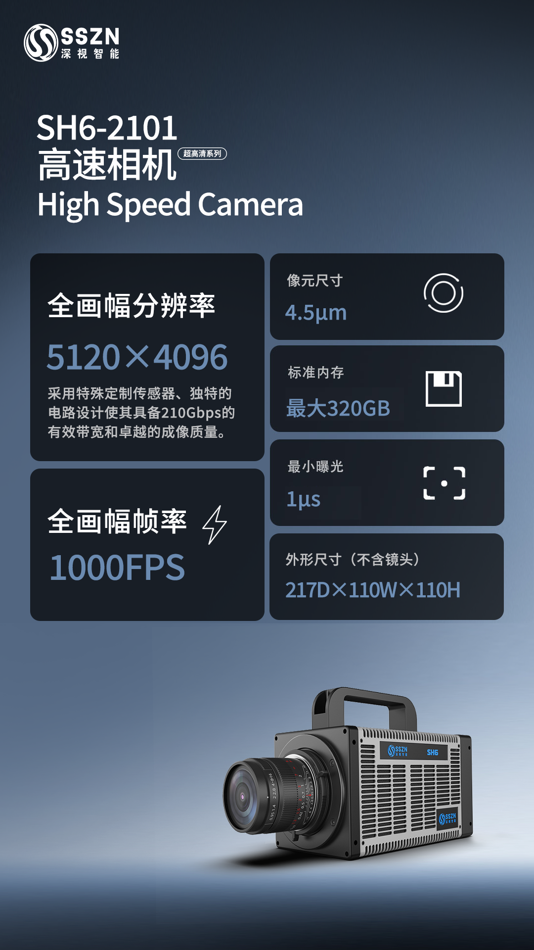 实验使用深视智能SH6-2101-C系列相机进行拍摄,5120×4096的高分辨率结合1000FPS的高采集速度,可以实现高质量的影像捕捉。