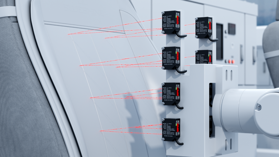 When combined with a robotic arm, multiple SD22-100 sensors can perform real-time measurement and data recording of the backrest surface. This setup ensures consistent results across every unit produced.