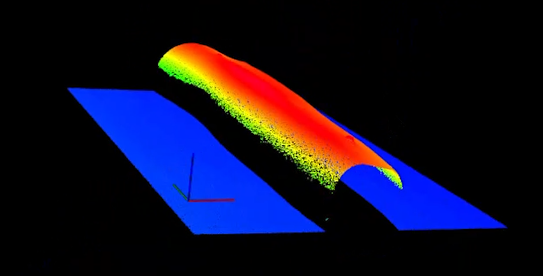 Shenshi Intelligent SR8020 Laser 3D Contour Measuring Instrument is used to scan the height and width of transparent adhesives, thereby obtaining the top surface features and contour information of adhesive dots.