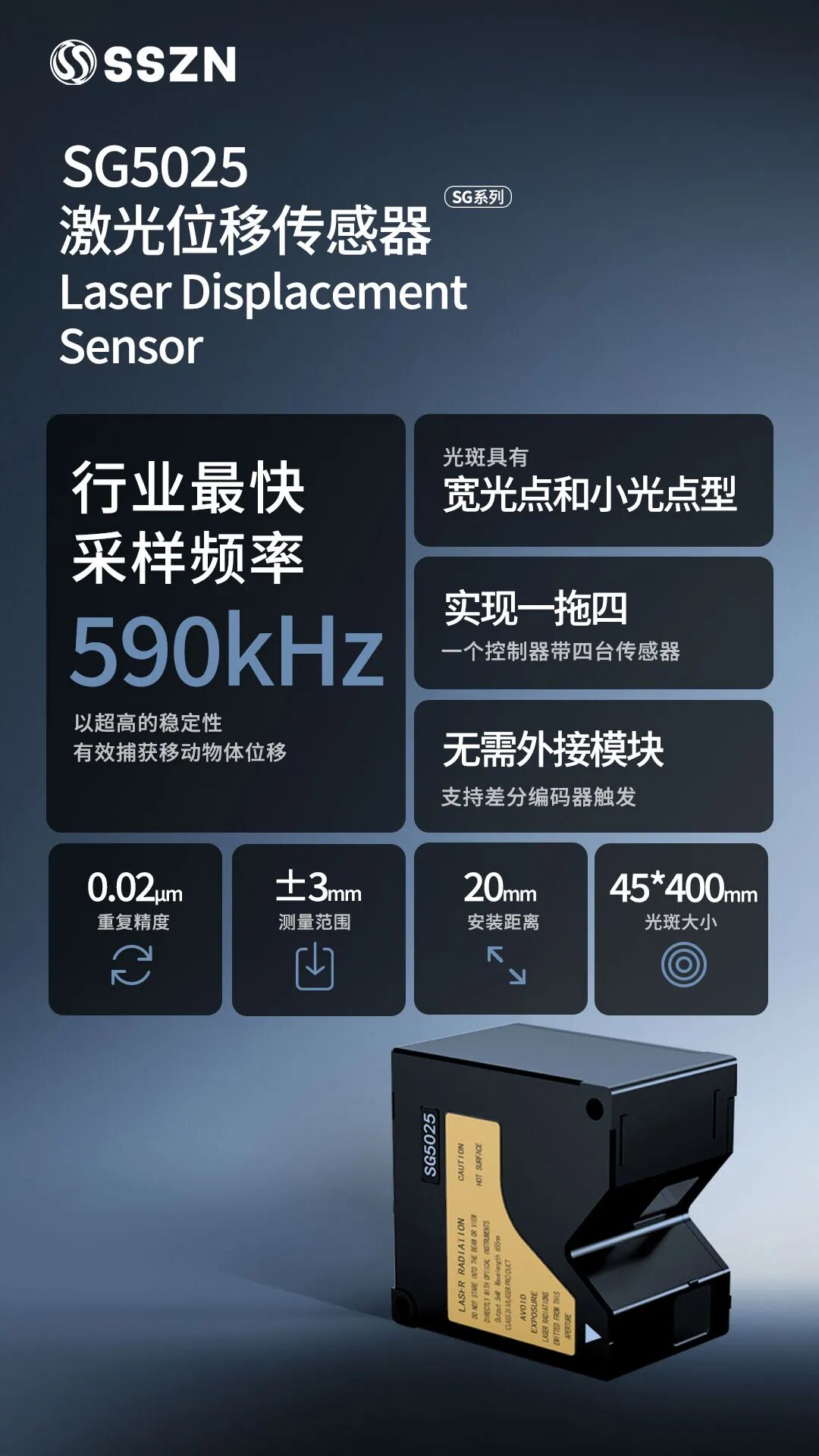 Shenshi Intelligent SG Series Laser Displacement Sensors feature an industry-leading fast sampling frequency of 590 kHz, with ultra-high stability and repeatability. They are widely used in lithium batteries, semiconductors, electronic components, film plastics and other fields.